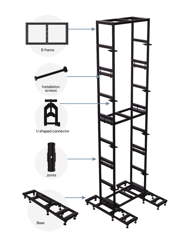 イベント用トラスを組み、そこにLED ビジョンを取り付ける方法です。